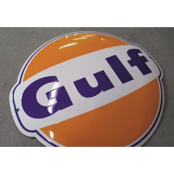 Gulf Automobil Emailleschild 40x36cm gewölbt